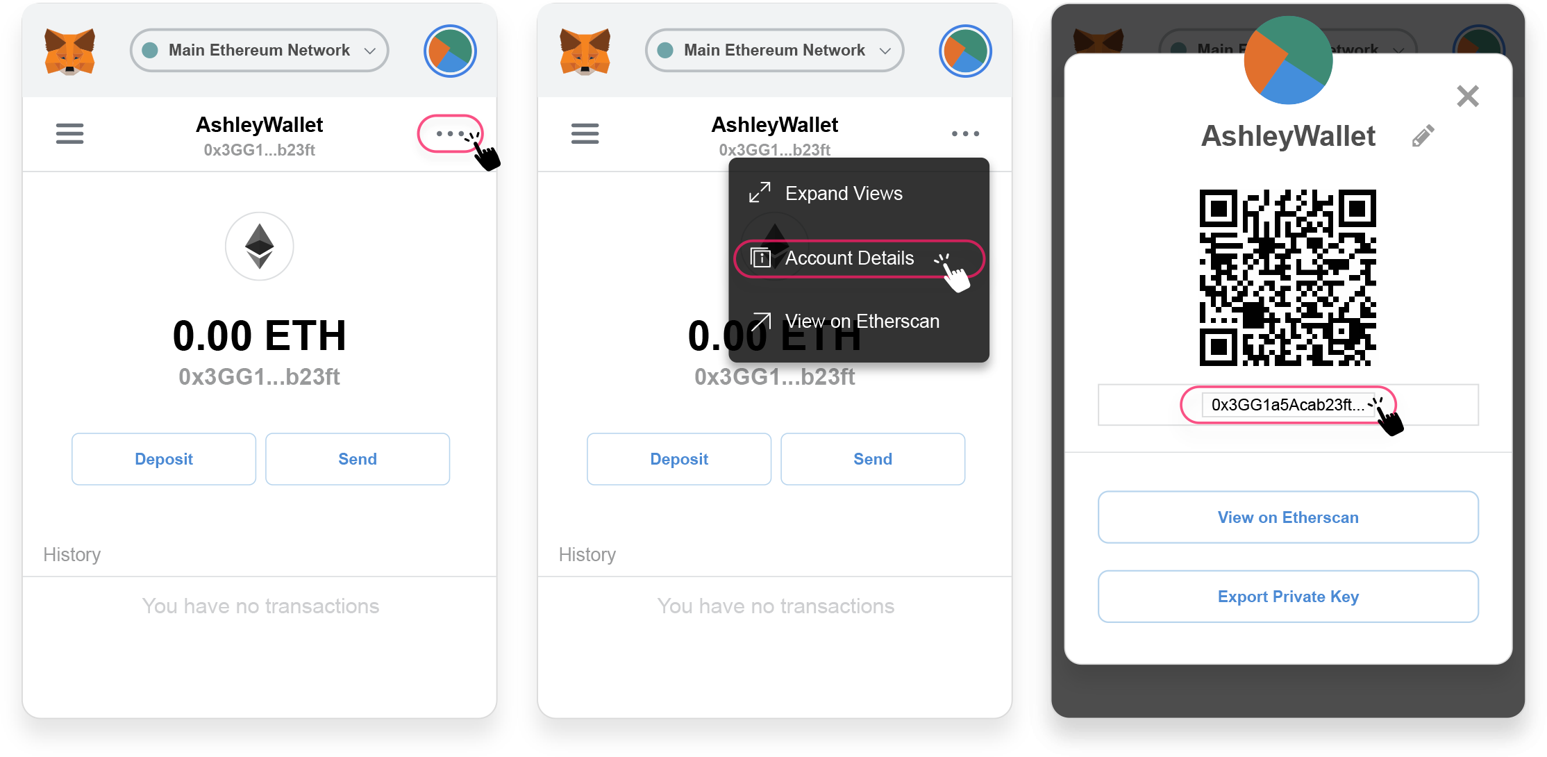 All wallets have a public and private key. A public key Is a unique identifier for your wallet and it looks like this: 0xcba113f589805095a892ecefdb4eb83eff45d98. It is basically a name that you can share freely with others and it’s used to direct assets to your wallet.