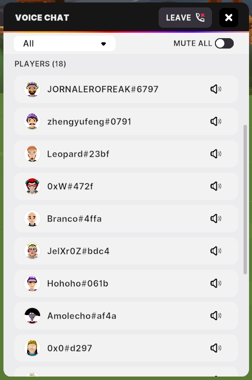 You will also be able to mute/unmute ALL the nearby users using the top right MUTE ALL toggle.